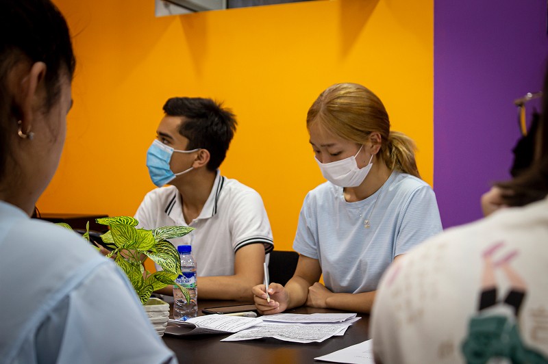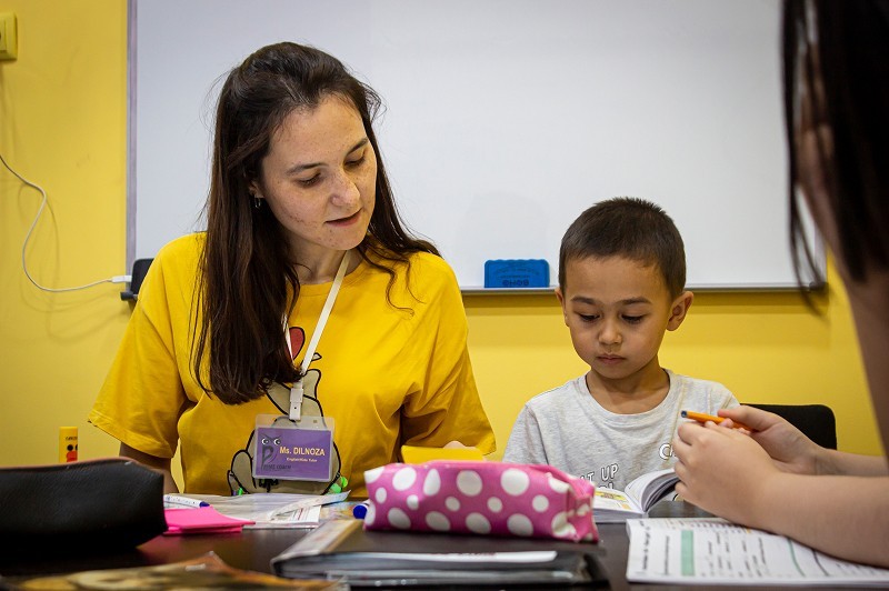 - С иностранными преподавателями только на английском языке. Наши иностранные учителя не говорят ни на русском, ни на узбекских языках.